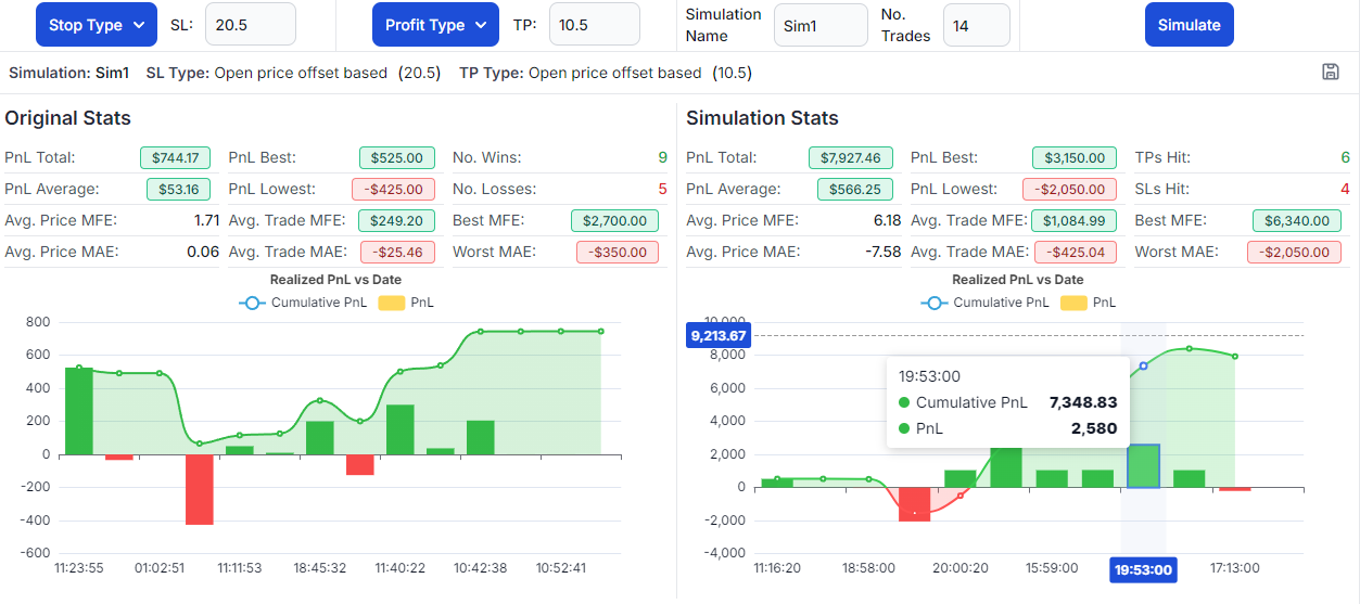 Here is a concrete example. A trader on a $50,000 account risks $500 per trade. After 30 trades, they are breakeven. Frustrating, but not unusual. Without a tracker, they keep doing the same thing. With a tracker, they filter by time of day and discover that their 15 trades before 10:30 AM have a profit factor of 1.8, while their 15 afternoon trades have a profit factor of 0.6. The fix is not a new strategy. It is stopping at 10:30 AM.