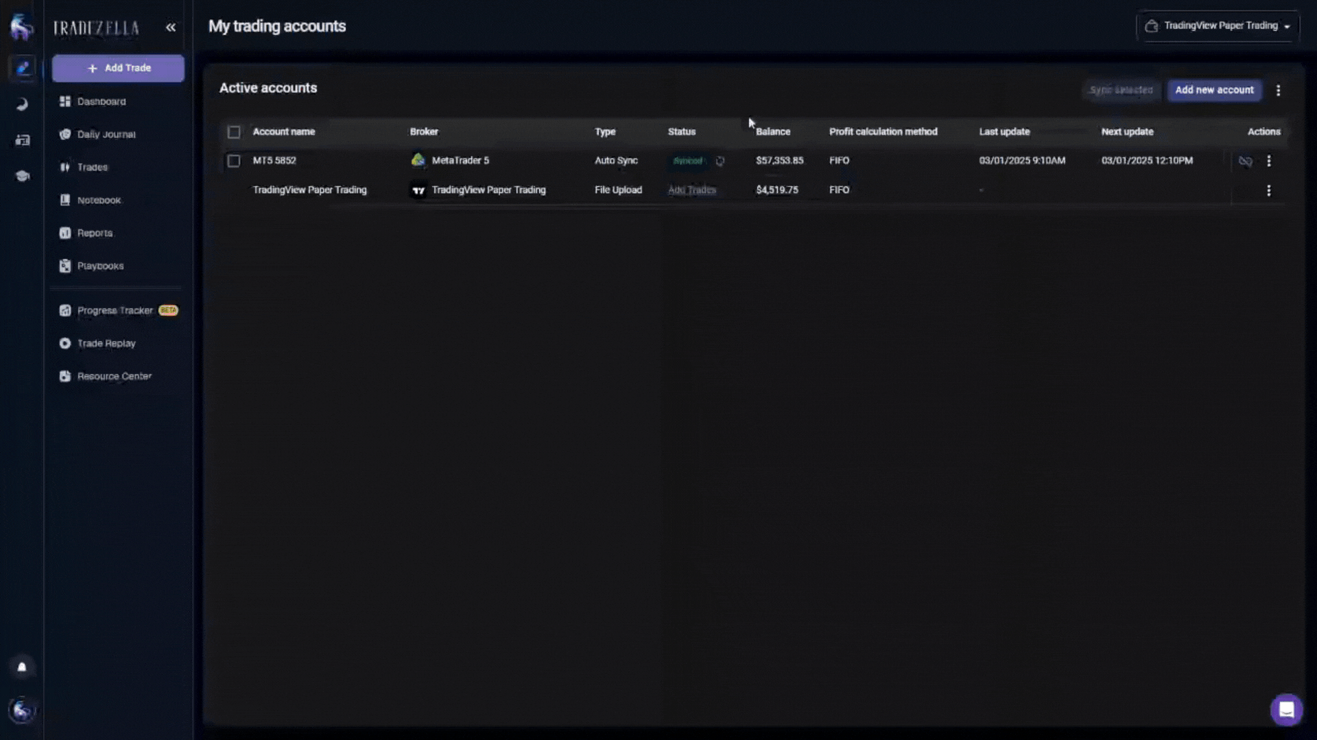 Yes. TradeZella supports up to 50 accounts on a single subscription. If you trade on both platforms or across multiple brokers, connect each account separately and all your trades consolidate into one analytics view.
