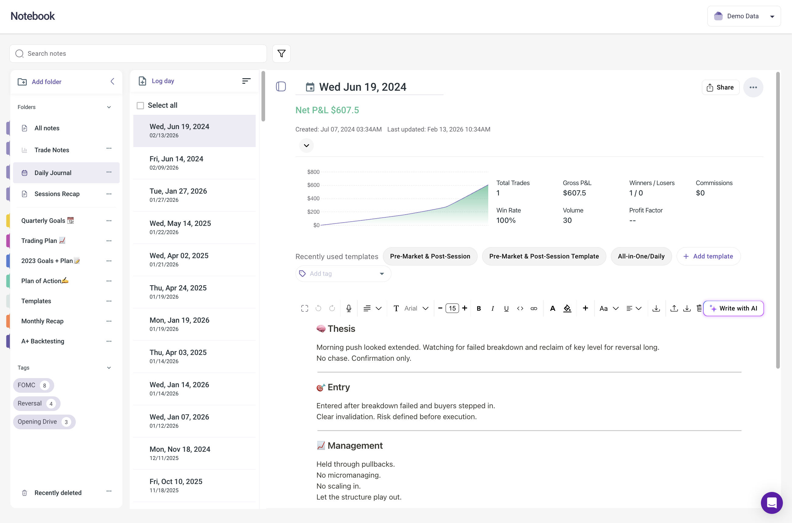 In TradeZella, document your protocol in the Notebook. Create a "Drawdown Protocol" entry with tier thresholds, loss limits, and re-entry criteria.